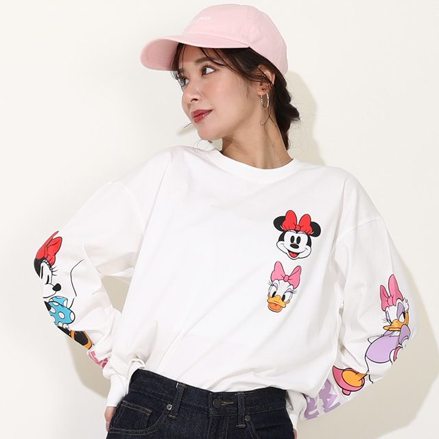 【ベビードール】ミニー デイジー 親子お揃い 袖キャラクタ ーロンT 0199A / 大人 ユニセックス 男女兼用 リンクコーデ ペアルック 親子コーデ トップス 長袖 クルーネック カットソー 天竺素材