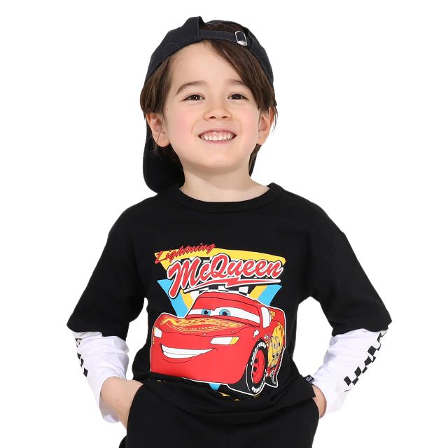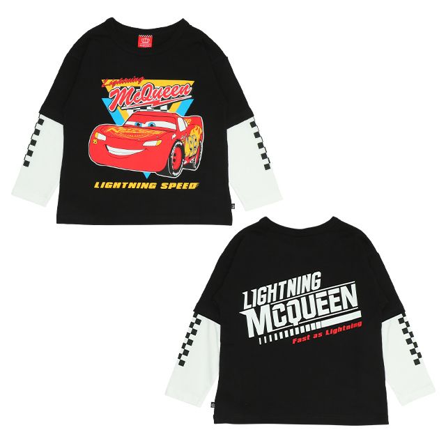 【ベビードール】カーズ レイヤードロンT 0221K / ライトニング・マックィーン ベビーサイズ キッズ 天竺素材 レイヤード風 トップス 長袖 クルーネック カットソー