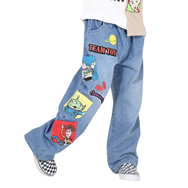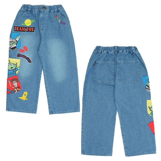 ベビーサイズ キッズ 男の子 女の子 こども 子ども服 長ズボン ボトムス デニムパンツ ジーンズ ジーパン フルレングス ストレート ウエストゴム キャラクター バズ ウッディ エイリアン リトルグリーンメン スタイリッシュ トレンド ベーシック カジュアル シンプル クール かっこいい おしゃれ ラフ ゆったり 可愛い かわいい 春夏秋冬
