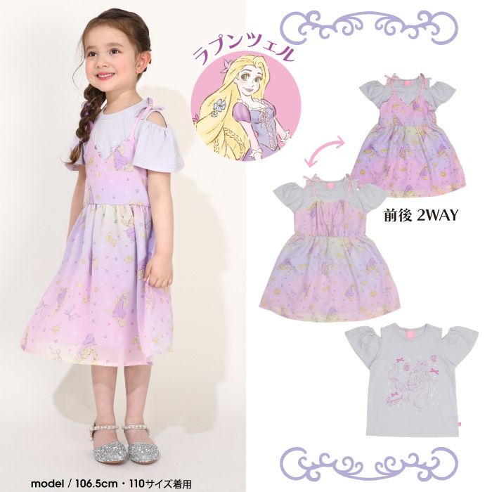 【ベビードール】ラプンツェル プリンセス / フリル×キャミソールワンピースセット 0265K / ベビーサイズ キッズ ワンピース スカート 半袖 肩出し ドレス セットアイテム 仮装 コスチューム コスプレ