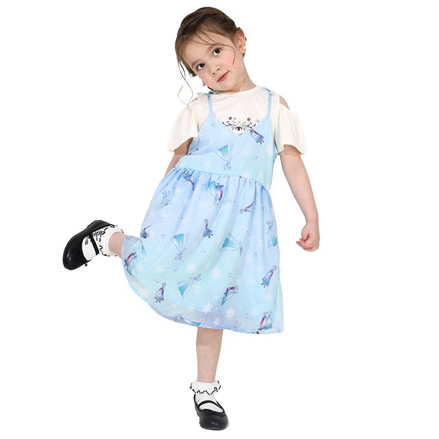 【ベビードール】アナ エルサ プリンセス / フリル×キャミソールワンピースセット 0265K / ベビーサイズ キッズ ワンピース スカート 半袖 肩出し ドレス セットアイテム 仮装 コスチューム コスプレ