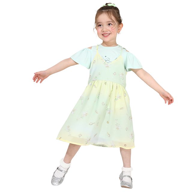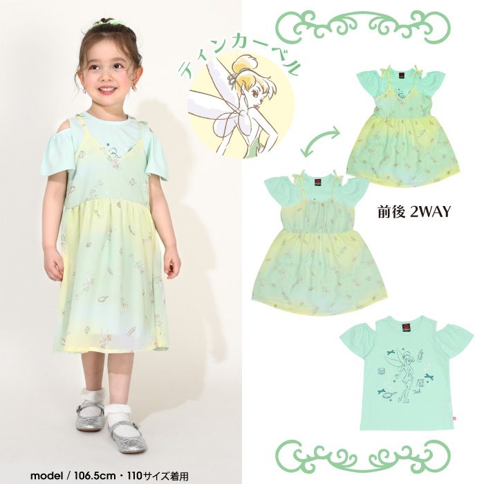【ベビードール】ティンカーベル プリンセス / フリル×キャミソールワンピースセット 0265K / ベビーサイズ キッズ ワンピース スカート 半袖 肩出し ドレス セットアイテム 仮装 コスチューム コスプレ