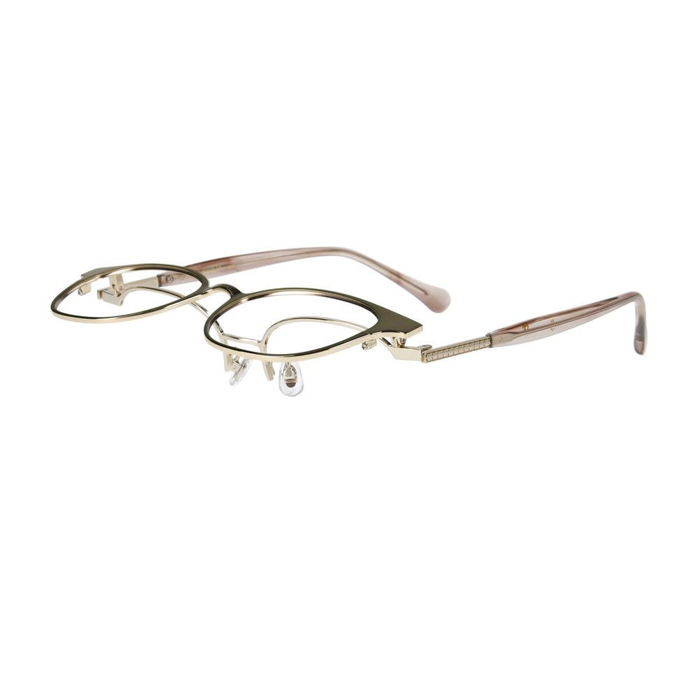 普段はメガネとして使用でき、手元を見るときはフロントを押し上げて裸眼で見られます。