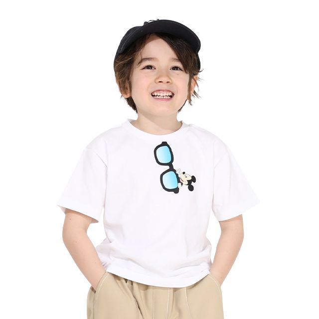 【ベビードール】ミッキー 親子お揃い サングラスTシャツ 0290K / ベビーサイズ キッズ リンクコーデ ペアルック 親子コーデ トップス 半袖 ワイドシルエット 天竺素材