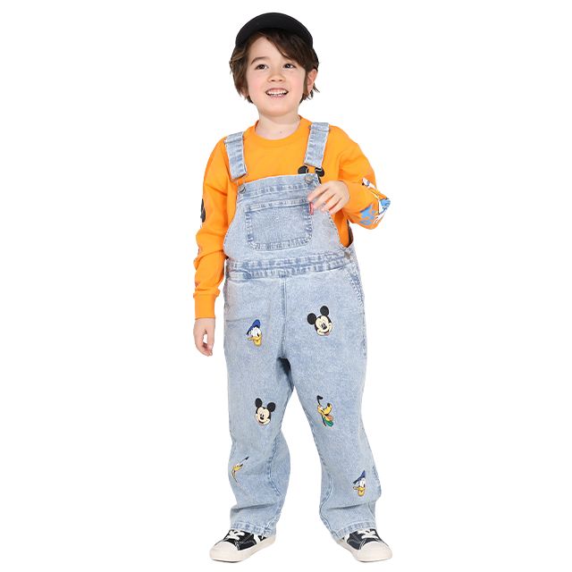 ベビーサイズ キッズ 男の子 女の子 こども 子ども服 袖なし 袖無し キャラクターデザイン ミッキーマウス ミッキー ドナルドダック つなぎ ユニーク オールインワン サロペット 着回し力抜群 春コーデ ワンポイント カジュアル シンプル クール かっこいい
