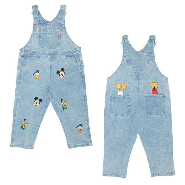 【ベビードール】ミッキー ドナルド ランダムキャラクターデニムサロペット 0294K / ベビーサイズ キッズ 袖なし つなぎ オーバーオール ショルダーベルト長さ調整可