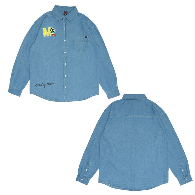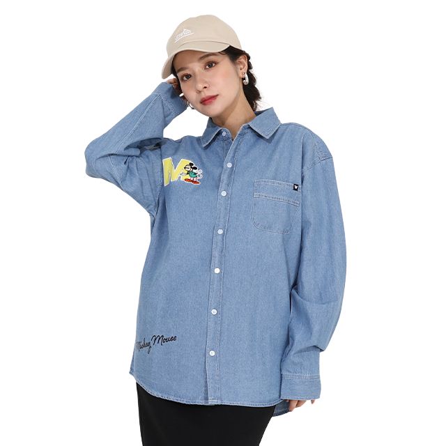 【ベビードール】ミッキー 親子お揃い ワッペンデニムシャツ 0296A / 大人 ユニセックス 男女兼用 リンクコーデ ペアルック 親子コーデ 長袖 トップス 羽織り