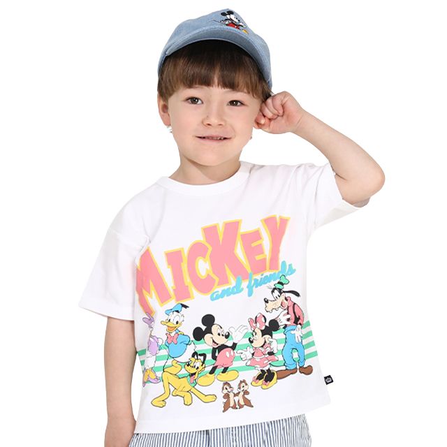ベビーサイズ キッズ 男の子 女の子 こども 子ども服 トップス 半袖 クルーネックカットソー 人気キャラクターデザイン ミッキーマウス ミニーマウス ミッキーフレンズ グーフィー デイジー ドナルドダック プルート チップデール ビッグシルエット ワイドシルエット ドロップショルダー カラフル ベビーサイズ トレンド ベーシック カジュアル シンプル クール かっこいい おしゃれ 可愛い かわいい
