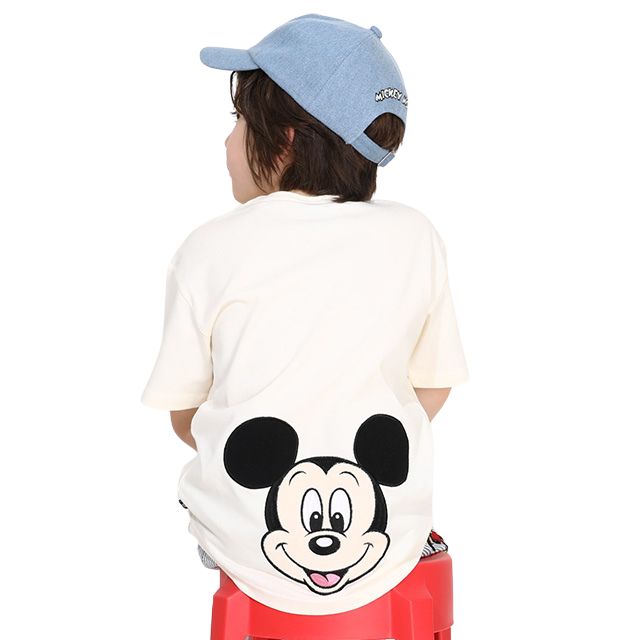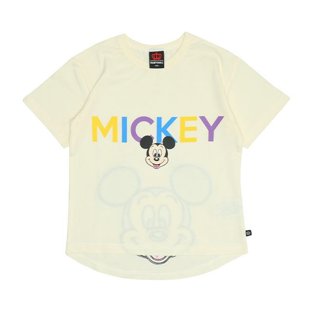 【ベビードール】ミッキー バックキャラクターワッペンTシャツ 0304K / ベビーサイズ キッズ トップス 半袖 天竺素材 後ろ裾ラウンド セミワイド