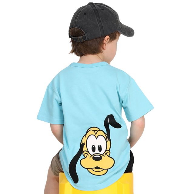 【ベビードール】プルート バックキャラクターワッペンTシャツ 0304K / ベビーサイズ キッズ トップス 半袖 天竺素材 後ろ裾ラウンド セミワイド