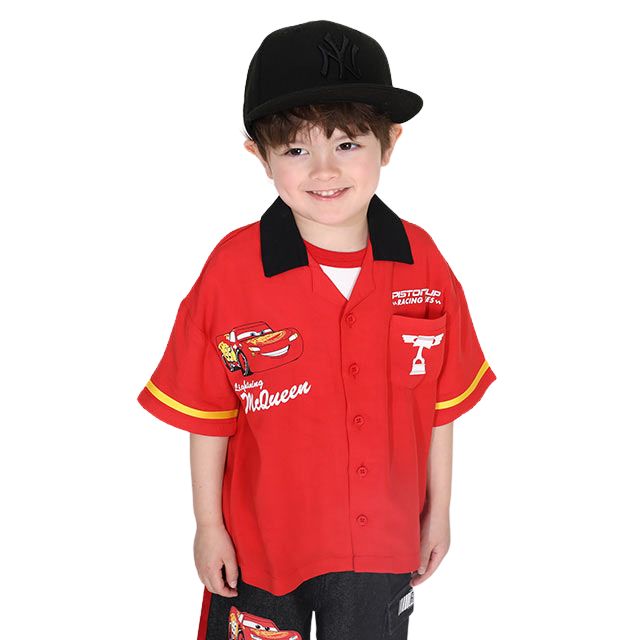 【ベビードール】カーズ エンブレム配色シャツ 0309K / ライトニング・マックィーン ベビーサイズ キッズ トップス 半袖 オープンカラー 開襟シャツ レーヨン素材
