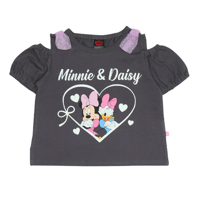 ベビーサイズ キッズ 女の子 こども 子ども服 トップス 半袖 人気キャラクターデザイン フィガロ ミニーの日 ペア ミニーマウス デイジーダック ベーシック トレンドカラー トレンドデザイン ガールズコーデ デイリーコーデ 肩出し ハート ヘルシー 元気 フェミニン カジュアル シンプル おしゃれ 可愛い かわいい