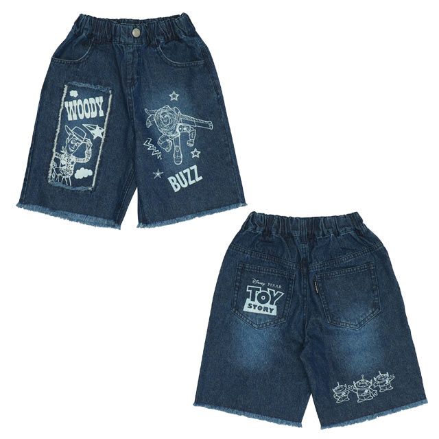 【ベビードール】トイ・ストーリー クラッシュデニムハーフパンツ 0393K / ウッディ バズ リトルグリーンメン ベビーサイズ キッズ ボトムス ショートパンツ 短パン 半ズボン ウエスト総ゴム ゴム穴付 ベルトループ ダメージ ヴィンテージ