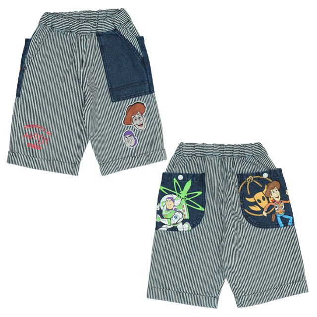 【ベビードール】トイ・ストーリー デニム切替ヒッコリーハーフパンツ 0394K / ウッディ バズ ベビーサイズ キッズ ボトムス ショートパンツ 短パン 半ズボン ウエスト総ゴム ゴム穴付