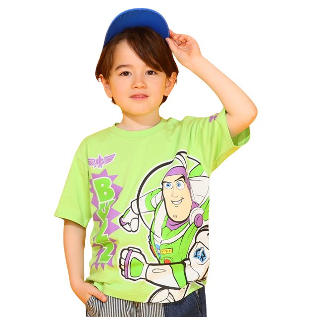 ベビーサイズ キッズ 男の子 女の子 こども 子ども服 リンクコーデ 親子ペア ペアルック 親子コーデ ファミリーコーデ お揃いコーデ おそろい 夜光 ネオン 光る 蛍光 ピクサー ウッディ バズ ジェシー リトルグリーンメン トップス 半袖 クルーネックカットソー カラフル トレンド ベーシック カジュアル かっこいい おしゃれ 可愛い かわいい 人気キャラクターデザイン