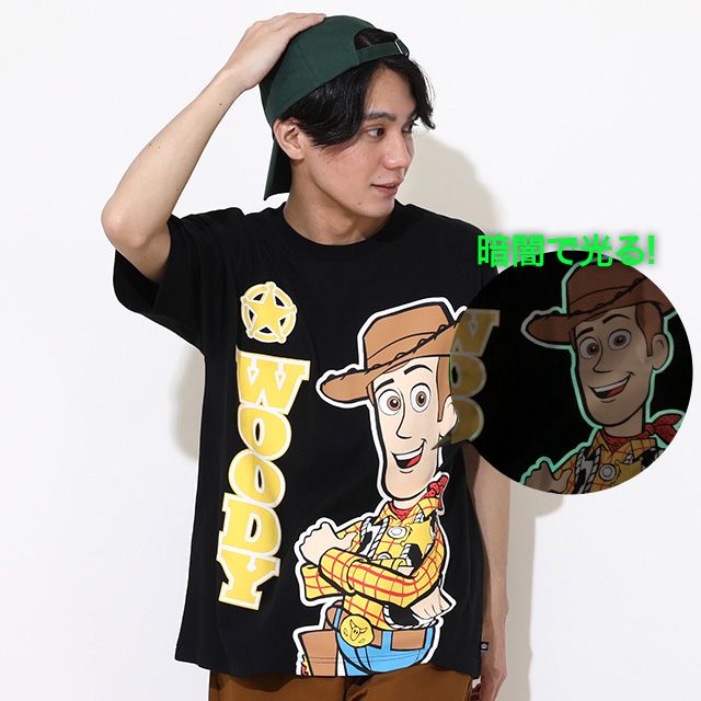 【ベビードール】ウッディ 親子お揃い 蓄光キャラクターTシャツ 0400A / トイ・ストーリー 大人 ユニセックス 男女兼用 リンクコーデ ペアルック 親子コーデ トップス 半袖 クルーネック カットソー 暗いところで光る 天竺素材