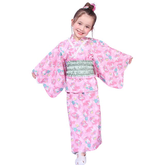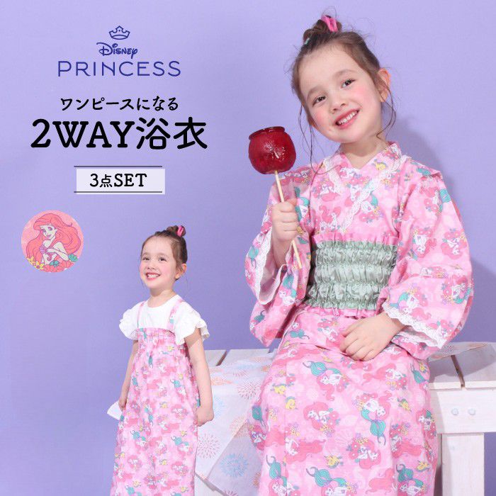 【ベビードール】アリエル プリンセス / 2WAY浴衣ワンピース 0434K / 90cm-140cm キッズ セパレートタイプ 3点セット 半袖 ワンピ ロングスカート 作り帯 胸部総ゴム(ギャザー) 肩紐長さ調整可(2段階/取り外し不可)