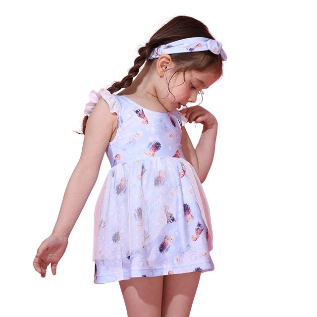 【ベビードール】アナ エルサ プリンセス水着 0442K / ベビーサイズ キッズ スイムウェア 水着 ワンピース ヘアバンド付き 2点セット 速乾 やわらか 楽ちん 【hg】