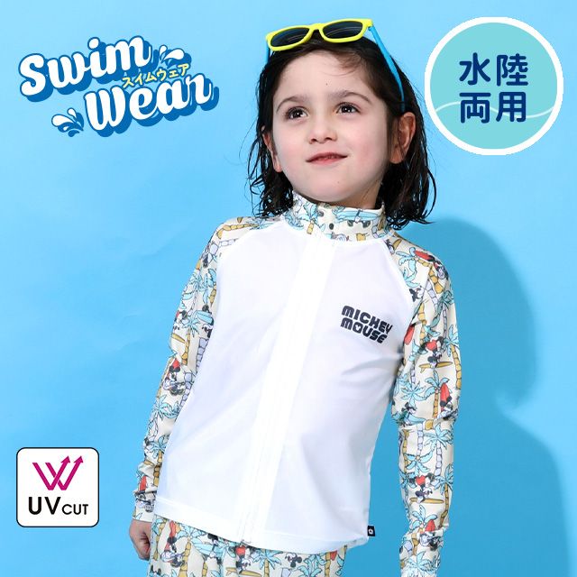 ベビーサイズ キッズ 男の子 女の子 こども 子ども服 トップス 長袖 羽織 上着 水着 スイムウェア スイムグッズ プール 海 海水浴 ビーチ 水遊び UVカット効果 UVガード UV対策 紫外線対策 紫外線防止 日焼け防止 日よけ防止 ケガ防止 軽量 軽い 軽やか 薄手 速乾 羽織 マリンスポーツ アウトドア レジャー ミッキーマウス かっこいい 夏 ヤシの木 ディズニーコラボ