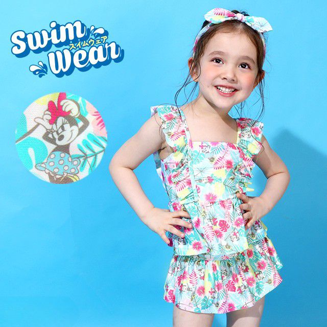女の子らしいフリルと夏らしいミニーマウスの総柄デザインがおしゃれ★