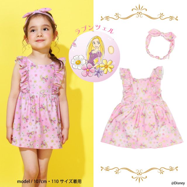 【ベビードール】ラプンツェル プリンセス水着 0442K / ベビーサイズ キッズ スイムウェア 水着 ワンピース ヘアバンド付き 2点セット 速乾 やわらか 楽ちん 【hg】