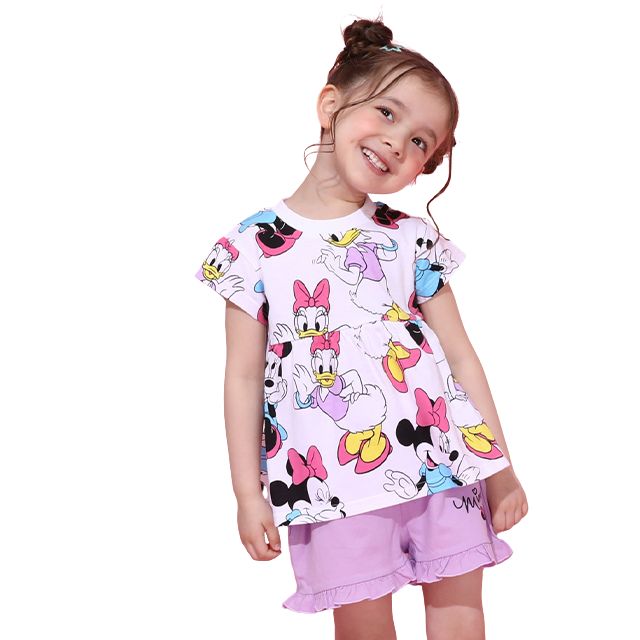 キッズ 女の子 女子 こども 子ども服 トップス ボトムス Tシャツ 2点セット 女の子らしい コーデセット 旅行 公園 通園 夏 お泊り セットアップ ディズニー POP ポップ カラフル 目立つ 人気キャラクターデザイン ミニーマウス デイジー シンプル 可愛い かわいい