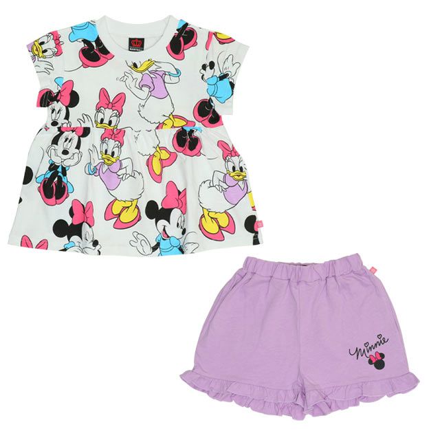 【ベビードール】ミニー デイジー フリルチュニック&ショートパンツ 2点セット 0472K / ベビーサイズ キッズ トップス ボトムス 半袖 短パン ショートパンツ 半ズボン ウエスト総ゴム ゴム穴付 上下セットアップ コーデセット