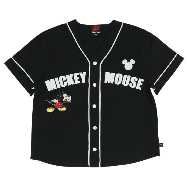 【ベビードール】ミッキー ベースボール半袖シャツ 0475K / ベビーサイズ キッズ トップス 半袖 羽織 ユニフォーム風 スポーティ