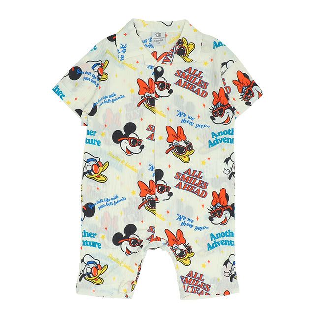 【ベビードール】リゾート総柄ロンパース 0478B / ミッキー ミニー デイジー ドナルド 70-80cm ベビーサイズ 赤ちゃん ベビー服 リンクコーデ ペアルック 親子コーデ つなぎ 半袖