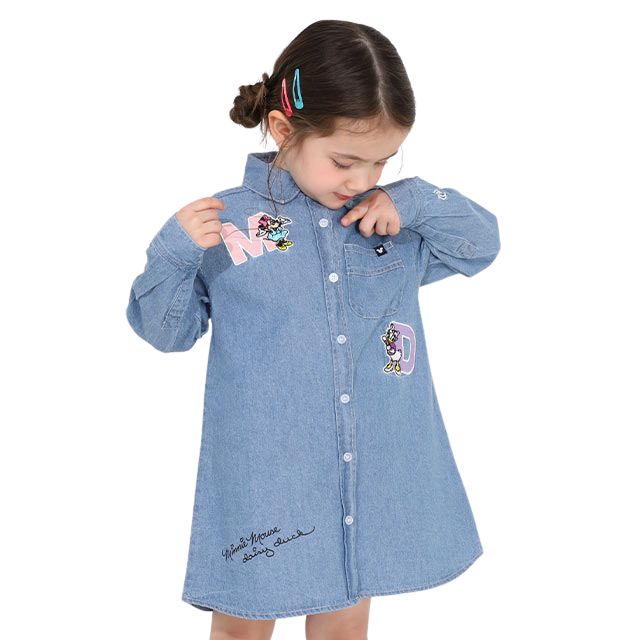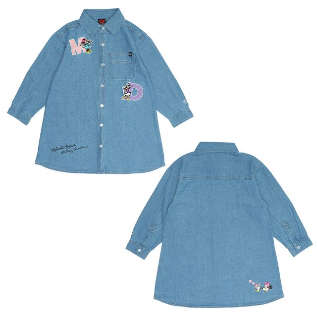 【ベビードール】ミニー 親子お揃い ワッペンデニムワンピース 0520K / デイジー ベビーサイズ キッズ リンクコーデ ペアルック 親子コーデ 長袖 トップス 羽織り ミニ丈 オールインワン