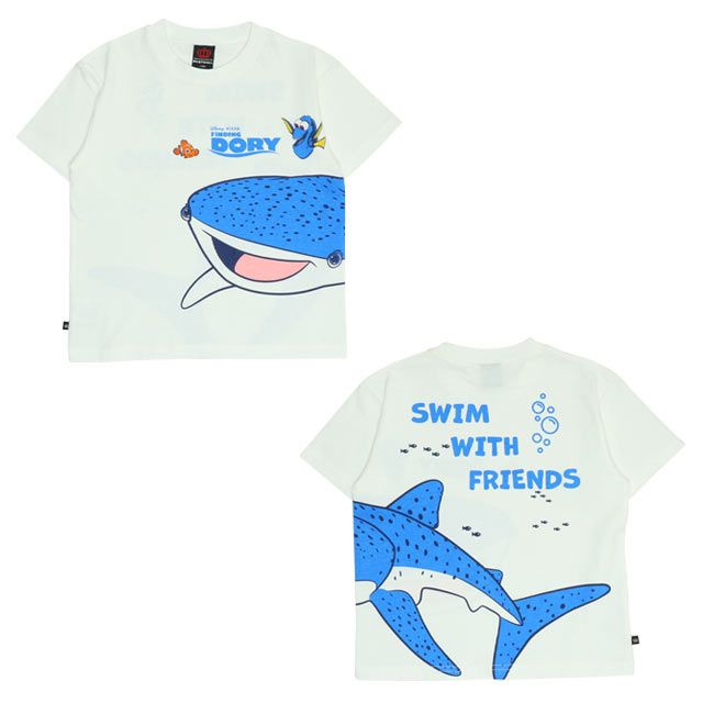 ベビーサイズ キッズ 男の子 女の子 こども 子ども服 リンクコーデ 親子ペア ペアルック 親子コーデ ファミリーコーデ お揃いコーデ おそろい トップス 半袖 つながる 繋がる ユニーク 個性的 人気キャラクターデザイン ピクサー サメ デスティニー ジンベイザメ 海洋生物 海の生き物 魚 繋がる 海 ベーシック カジュアル シンプル クール かっこいい おしゃれ 可愛い かわいい