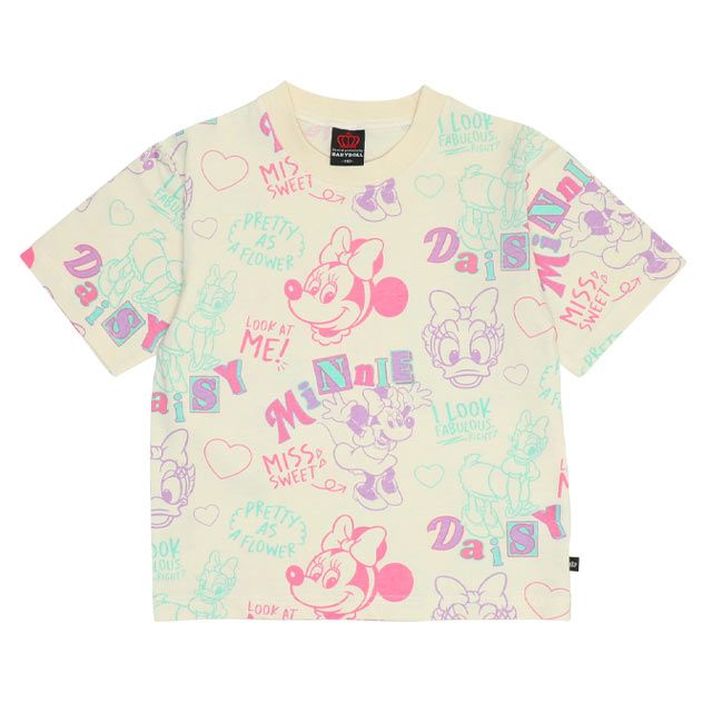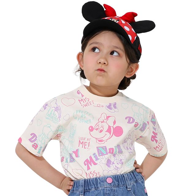 【ベビードール】ミニー デイジー 親子お揃い カラフル総柄 Tシャツ 0576K / ベビーサイズ キッズ リンクコーデ ペアルック 親子コーデ トップス 半袖 天竺素材 レトロ ポップ