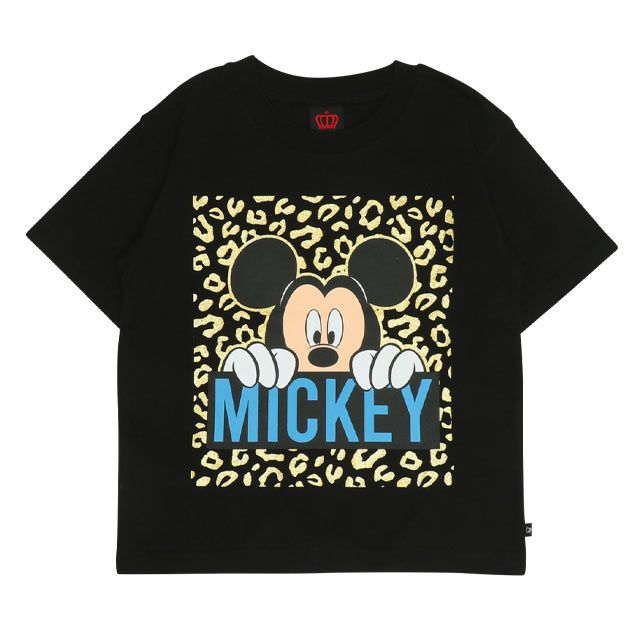 【ベビードール】ミッキー 親子お揃い ヒョウ柄キャラクター Tシャツ 0581K / ベビーサイズ キッズ リンクコーデ ペアルック 親子コーデ トップス 半袖 天竺素材 一部ラメプリント