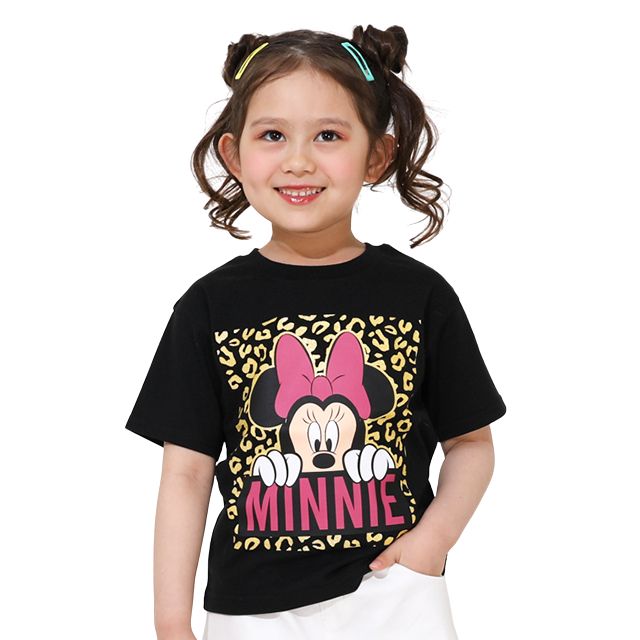 【ベビードール】ミニー 親子お揃い ヒョウ柄キャラクター Tシャツ 0581K / ベビーサイズ キッズ リンクコーデ ペアルック 親子コーデ トップス 半袖 天竺素材 一部ラメプリント