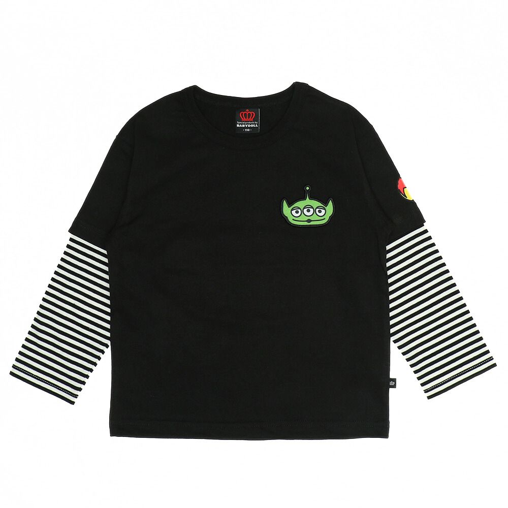 袖部分のストライプがスタイリッシュなトイストーリーのレイヤード風ロンT♪