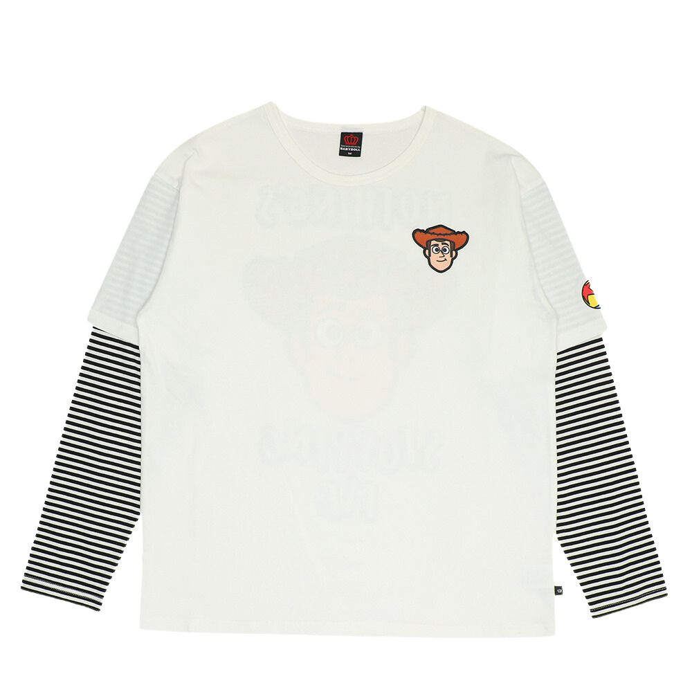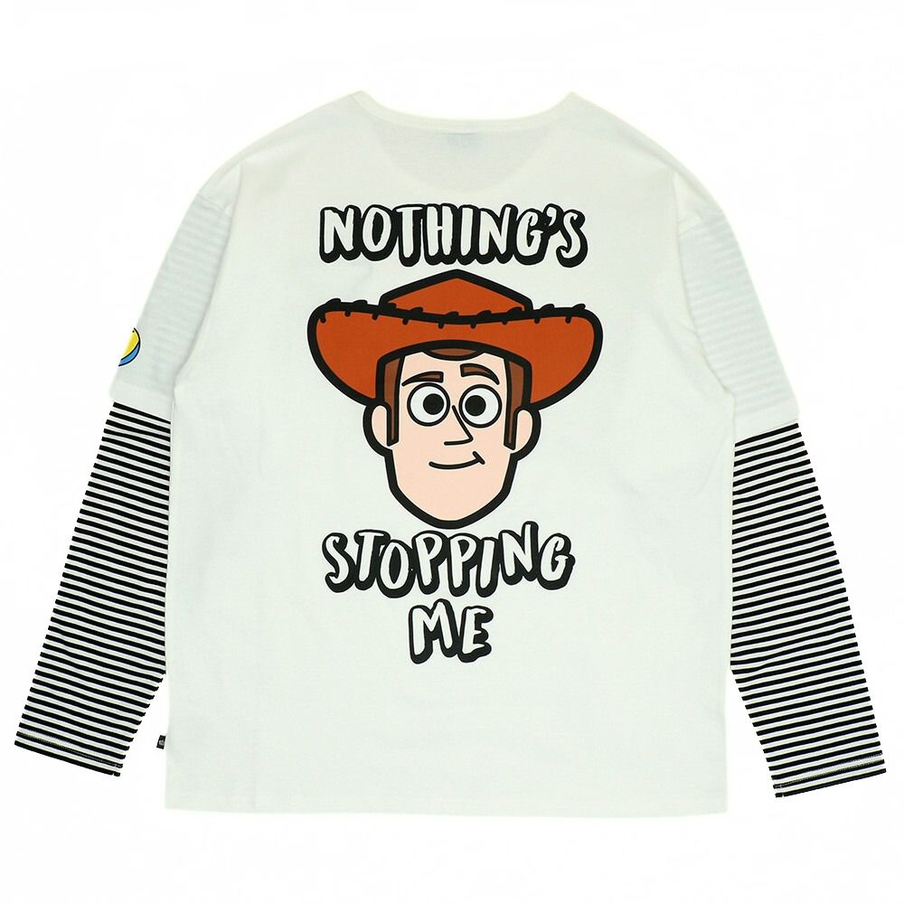 袖部分のストライプがスタイリッシュなトイストーリーのレイヤード風ロンT♪