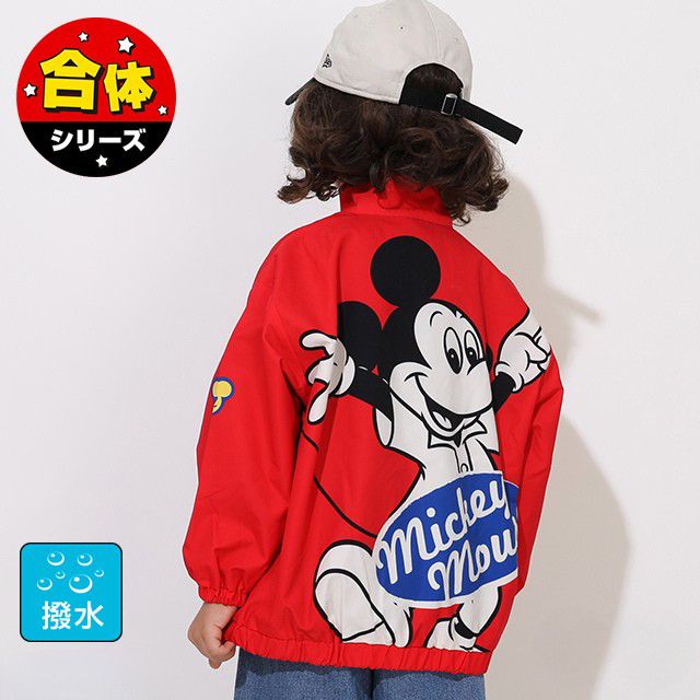 【ベビードール】ミッキー BIGキャラクター【合体】ウインドブレーカー 0761K / ベビーサイズ キッズ トップス 長袖 アウター 羽織り ブルゾン 撥水加工 別売のボアアウターとドッキング(合体)して冬でも大活躍