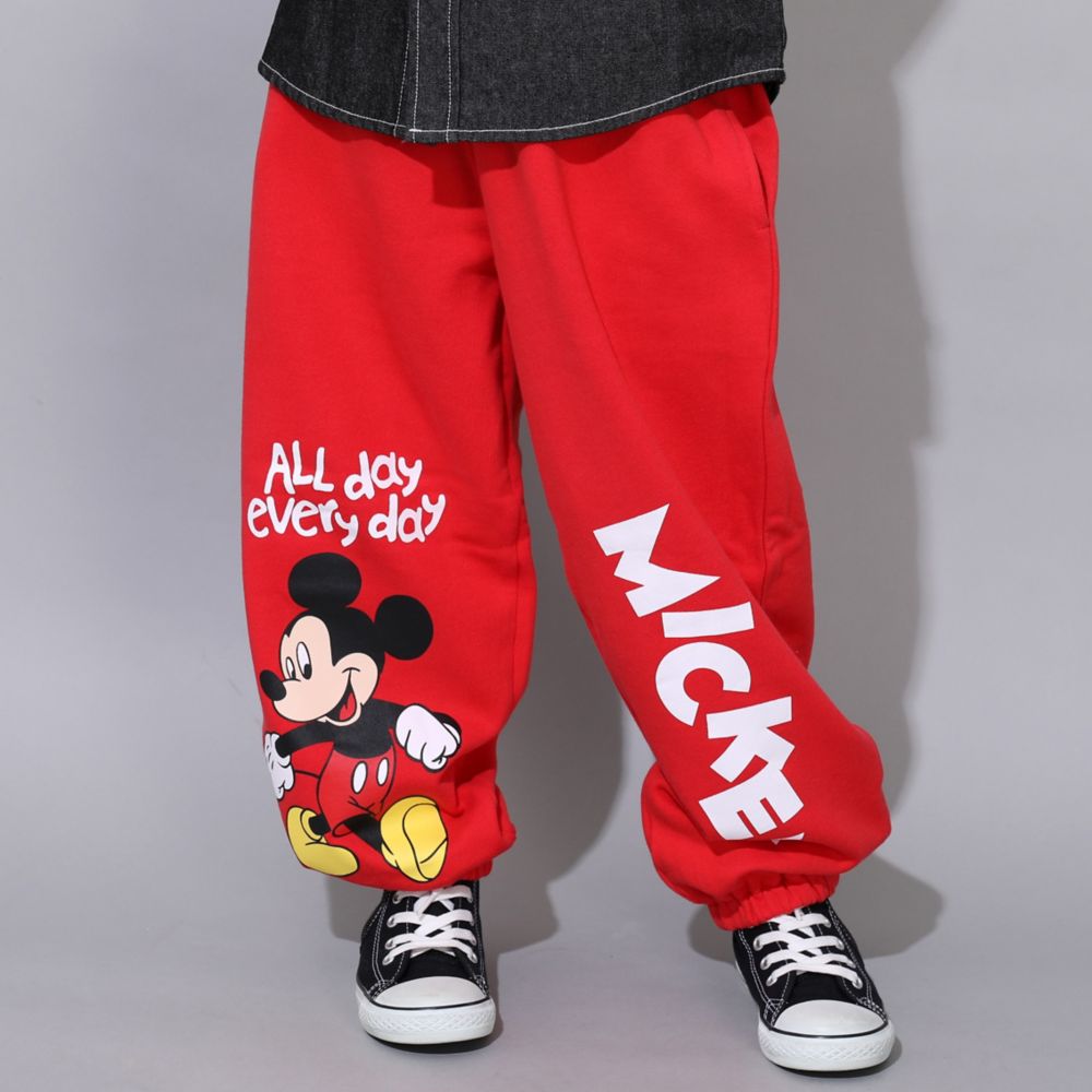【ベビードール】ミッキー キャラクターロングパンツ 0766K / ベビーサイズ キッズ ボトムス 長ズボン スウェット ゆったり ウエスト総ゴム ゴム穴付き スピンドル紐あり