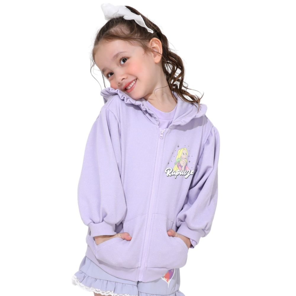 【ベビードール】ラプンツェル プリンセス / ラメジップパーカー 0864K / キッズ ベビーサイズ 長袖 ライトアウター 羽織り スウェット パーカー ラインストーン ラメ キラキラ フリル ボリューム袖 カンガルーポケット シワになりにくい ガーリー