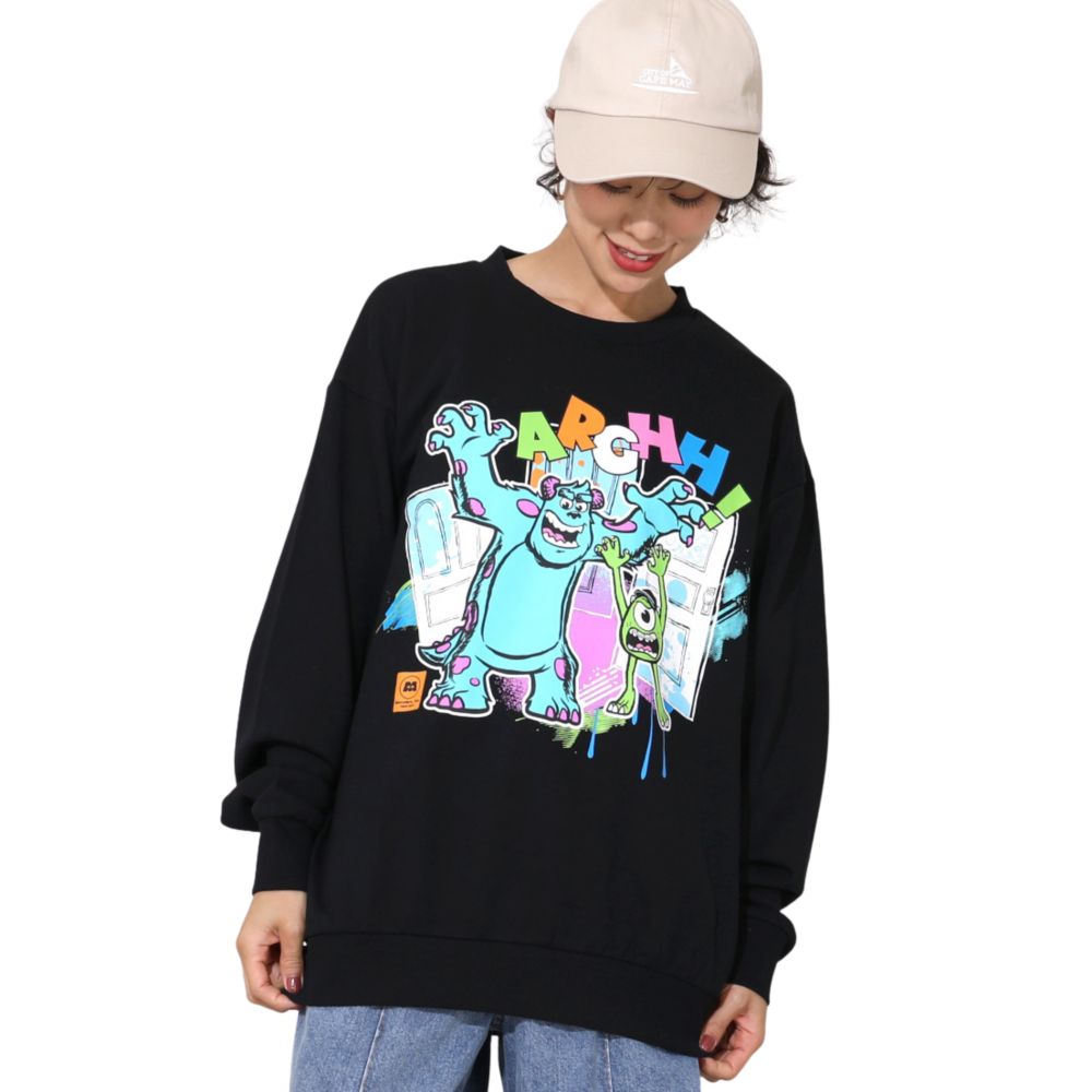 大人 ユニセックス 男女兼用 レディース メンズ リンクコーデ 親子ペア ペアルック 親子コーデ ファミリーコーデ お揃いコーデ おそろい 親子お揃い トップス 長袖 プルオーバー フード無し ポップ マイク サリー キラキラ 夜光 キャラクタートレーナー 目立つ カジュアルコーデ ロゴ ベーシック カジュアル シンプル トレンド クール かっこいい おしゃれ 可愛い かわいい モンスターズインク