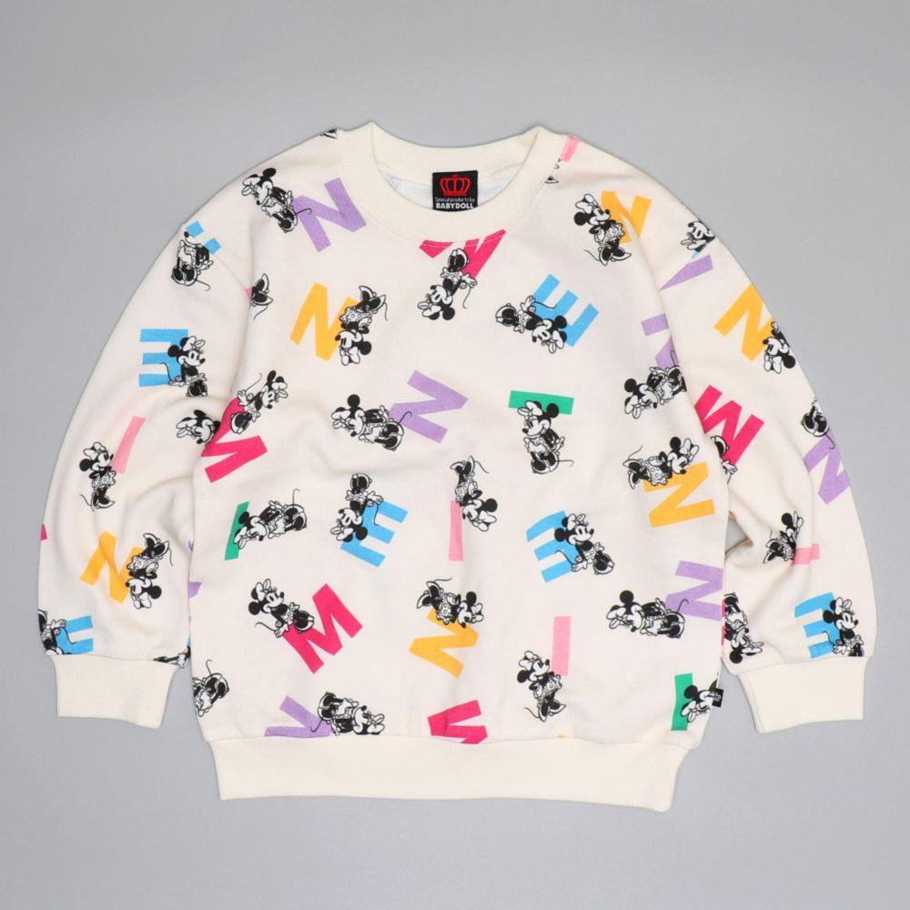 【ベビードール】ミニー 親子お揃い カラフル総柄トレーナー 0906K / ベビーサイズ キッズ リンクコーデ ペアルック 親子コーデ トップス 長袖 スウェット プルオーバー 春秋冬