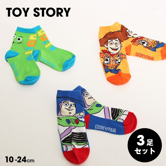 ベビーサイズ キッズ 雑貨 靴下 男の子 女の子 こども 子ども服 くつ下 靴下3足セット 靴下3足組み 靴下3点セット 3Pソックスセット キャラクターソックス キャラソックス 人気キャラクター トイストーリー 映画公開 バズ ウッディ エ