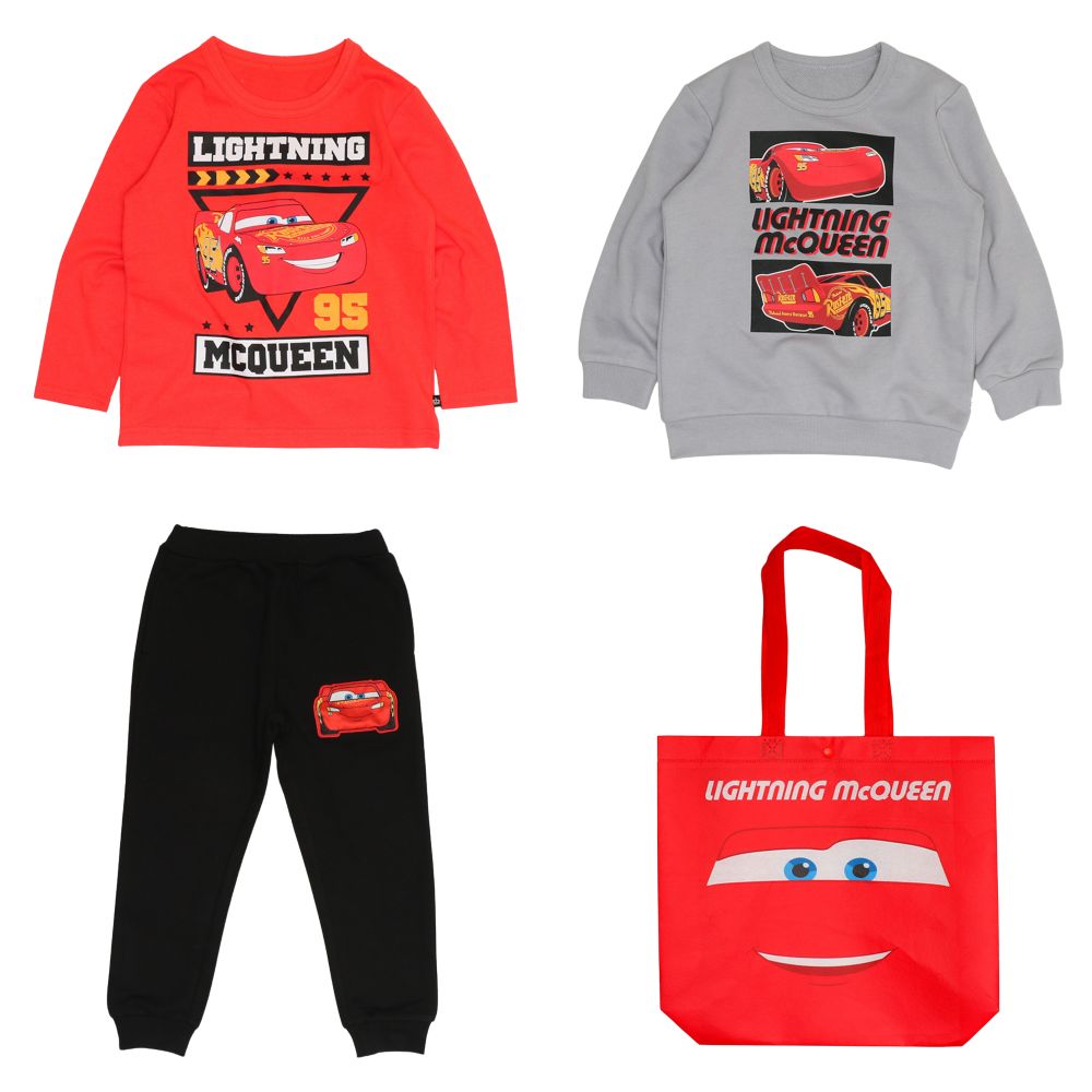 【ベビードール】カーズ キャラクター3点セット 1002K / ベビーサイズ キッズ 長袖 トップス ボトムス トレーナー ロンT 長袖Tシャツ ロングパンツ 長ズボン 春秋冬 福袋 セット商品 お得なセット オリジナルバッグ付き 3点セット トータルコーディネート