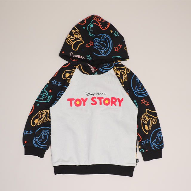 ネオン風のキャラクターアートがおしゃれなTOY STORYのスウェットパーカー♪