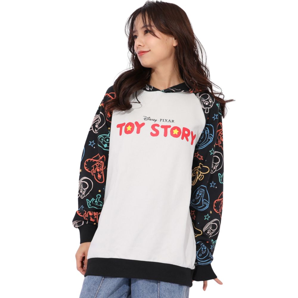 大人 ユニセックス 男女兼用 レディースフリーサイズ メンズ リンクコーデ 親子ペア ペアルック 親子コーデ ファミリーコーデ お揃いコーデ カップル 切替デザイン フーディー トップス 長袖 トップス プルオーバー スウェット 肩落ちデザイン ドロップショルダー バズ ウッディ エイリアン ジェシー スリンキー ボーピープ ポップ カジュアル ロゴ おしゃれ 可愛い かわいい かっこいい ビッグシルエット ワイドシルエット 綿100 綿100%