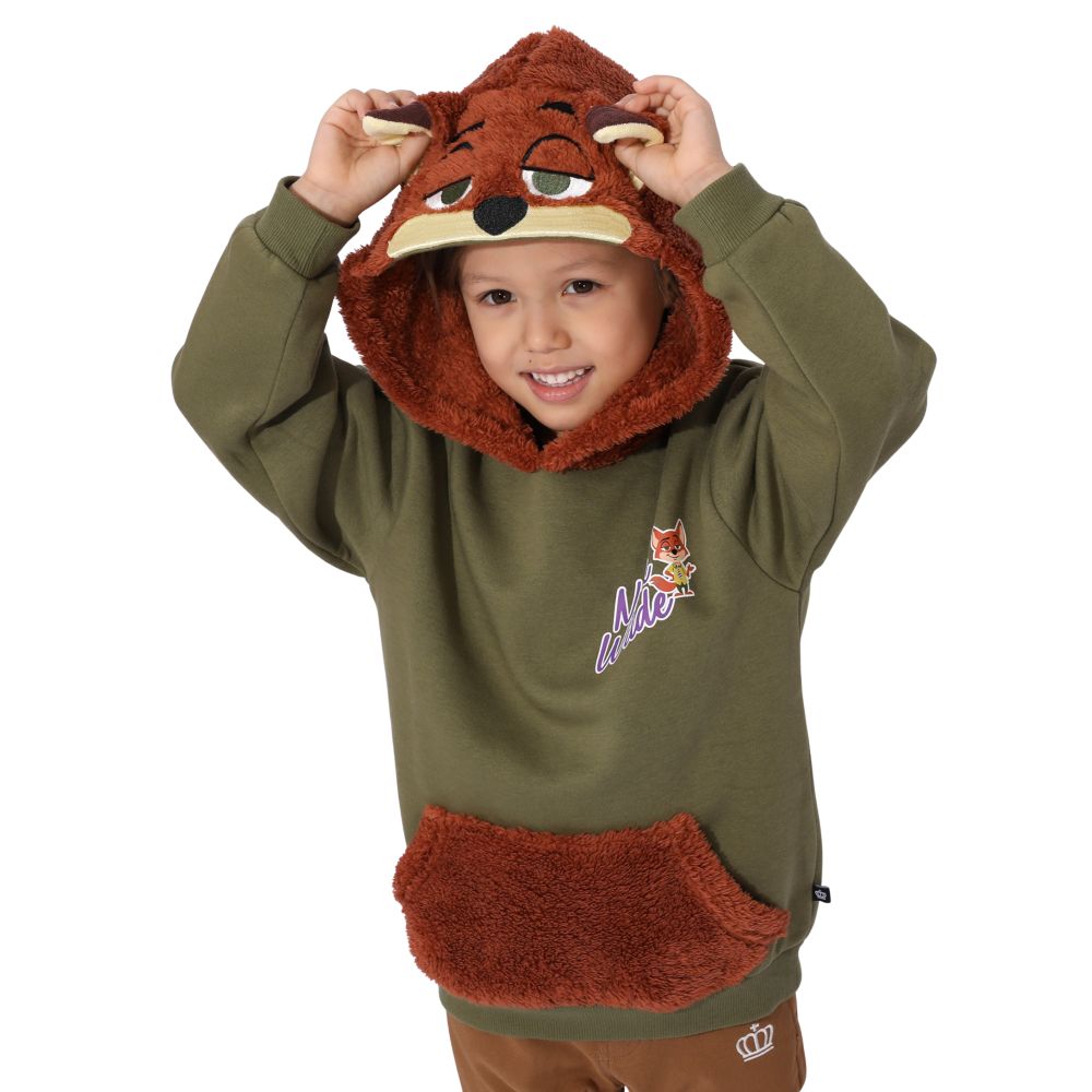 【ベビードール】ニック なりきるフードボア裏起毛パーカー 1013K / ベビーサイズ キッズ トップス 長袖 フーディ プルオーバー 裏起毛 ふわふわ もこもこ ボア素材 立体モチーフ 防寒 なりきれる 仮装 コスプレ