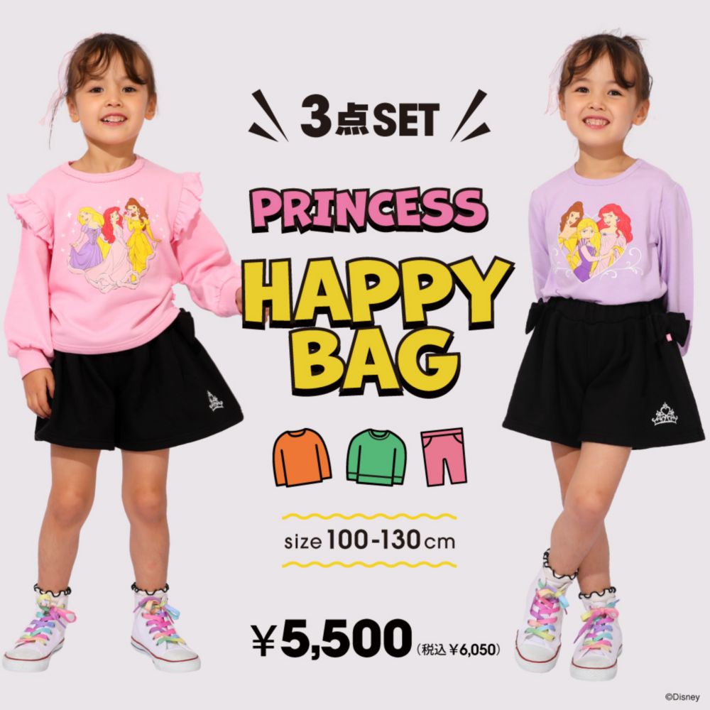 ベビーサイズ キッズ 女の子 こども 子ども服 キャラセット ホリデーセット ハッピーセット キャラクター プリンセス クリスマス お姫様 リトルマーメイド アリエル 塔の上のラプンツェル ラプンツェル 美女と野獣 ベル ギフト 長袖 トップス バッグ付き キュート フリル おしゃれ 可愛い かわいい フェミニン 2026福袋