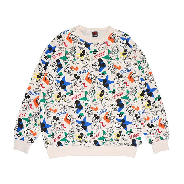 レトロ感のあるDisneyキャラクターの総柄が目を引くトレーナー★