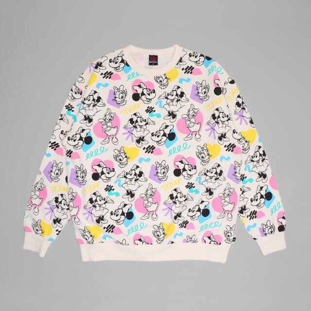 レトロ感のあるDisneyキャラクターの総柄が目を引くトレーナー★