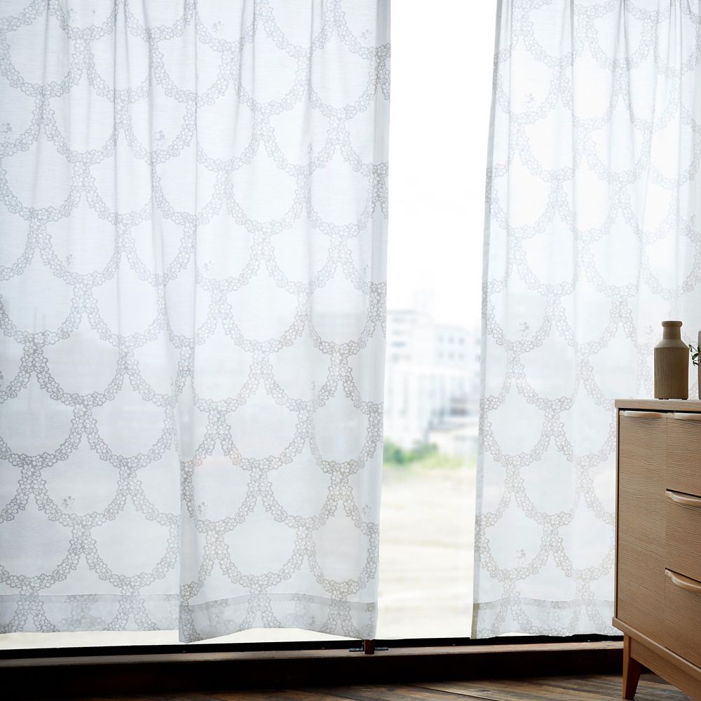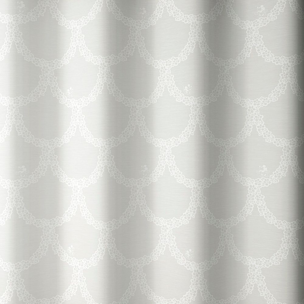小花リースの中で遊ぶミッキーを白ラッカーでプリントしたエレガントな雰囲気のボイルです。